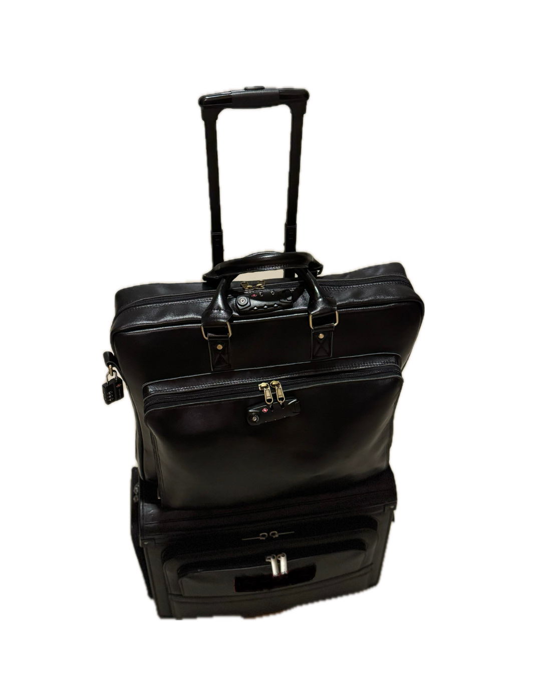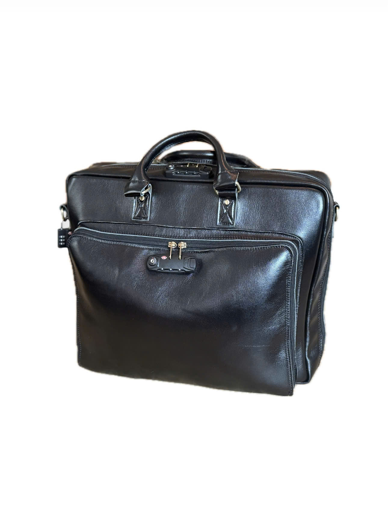 Our black leather layover bags are the epitome of travel elegance. Perfect for the jet-setter, these bags combine spacious interiors with sleek, robust exteriors, ensuring your essentials travel in style and safety. Each bag features our signature logo, subtly laser stamped for an understated yet distinctive look.