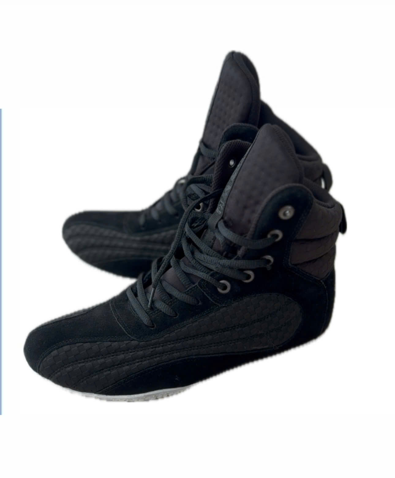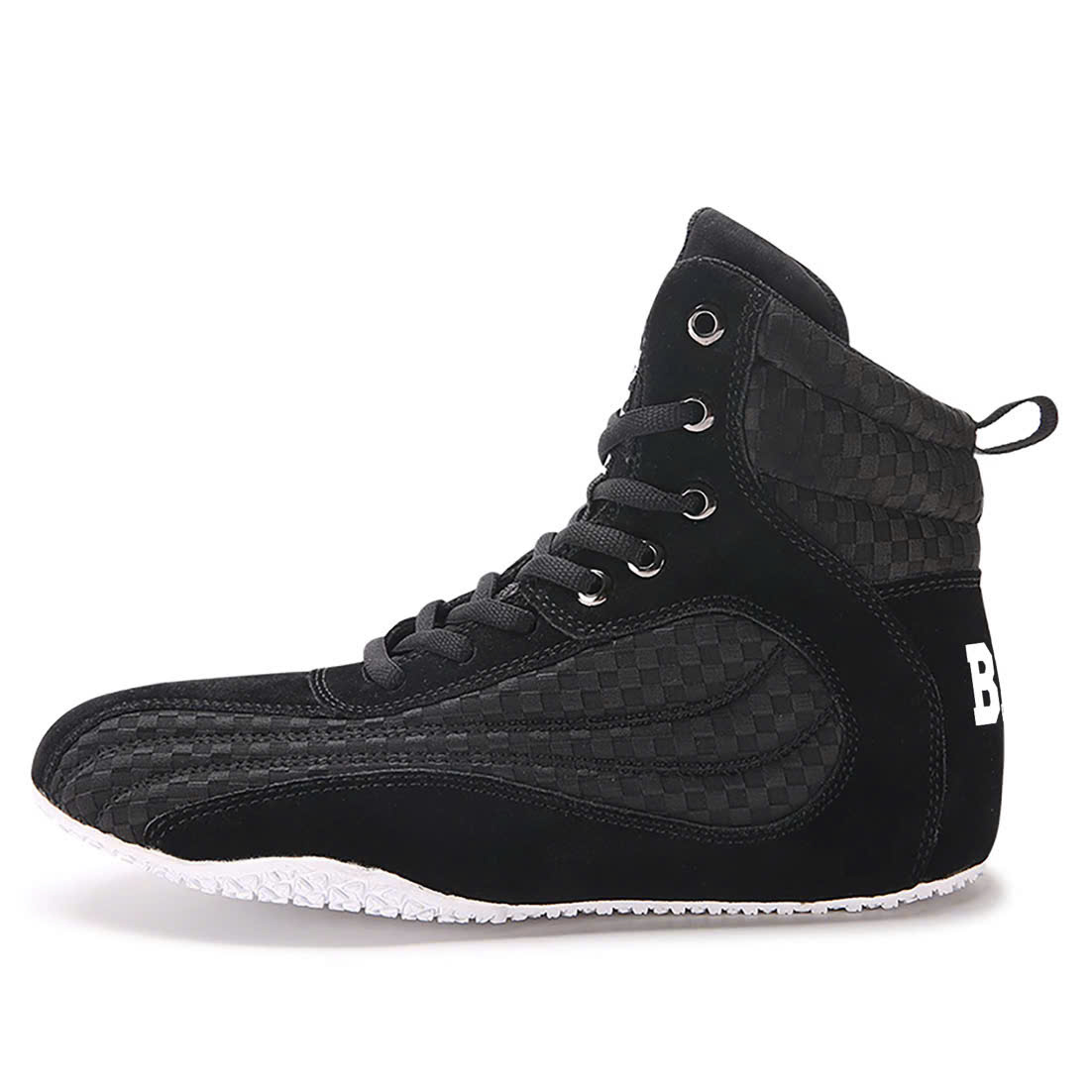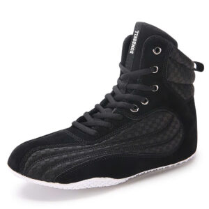 Elevate your workout game with these top-tier black high-top bodybuilding shoes, designed for serious lifters and fitness enthusiasts! Crafted with a durable, textured suede upper, these shoes offer exceptional support and stability, perfect for heavy lifting and intense gym sessions. The lace-up closure with sturdy metal eyelets ensures a secure, customized fit, while the thick, cushioned sole absorbs impact and enhances balance during squats, deadlifts, and more.